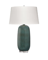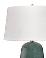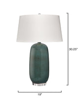 A deep teal reactive glaze covers this handcrafted ceramic lamp, capturing the transformative beauty of nature. Mid-century glazing techniques produce subtle shading and spontaneous patterns, ensuring that each piece is entirely unique. The refined form makes it a versatile accent suitable for both formal and casual settings. Its artistry and elegance elevate any space, providing color, character, and functional lighting in a single sophisticated statement piece.