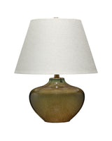 Artisans pair voluptuous curves with a rich, deep olive green in this mid-century inspired ceramic table lamp. The subtle shading and spontaneous designs that our artisans create using the reactive glazing technique make each piece unique, ensuring each lamp becomes a refined, one-of-a-kind accent that feels equally at home in formal or casual settings. We top it with a linen cone shade and add a touch of warmth with brass hardware and a coordinating brass finial.