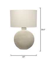 Celestial inspiration shapes this dramatic ceramic lamp. Artisans cast and hand-glaze its unique oval base, which occupies a surprisingly small footprint. A matching white linen oval shade continues the monochromatic effect, softly diffusing light. Adaptable across a variety of décor styles, it is ideal for brightening an entryway or accenting a console. Its sculptural design combines functionality, elegance, and artisanal craftsmanship for enduring appeal.
