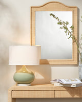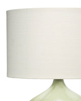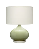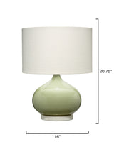 Artisans expertly create the curves of this lamp from hand-blown glass and then paint them in a soft shade of green. Anchored with a cool circle of stone, the white marble provides a pleasingly balanced counterpoint to its plump teardrop shape. It offers a casual, effortless look, providing a lovely pop of color while maintaining versatility and blending easily into most decors.