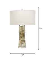 Artisans craft each table lamp from hand-selected pieces of natural horn combined with crystal-clear acrylic, making every piece truly one-of-a-kind. An off-white linen oval shade tops the lamp, diffusing light softly. Use a pair on an entryway console or position them on side tables in a bedroom for a coordinated, sophisticated look. The materials and craftsmanship make these lamps distinctive functional art.