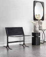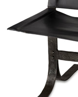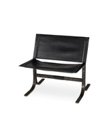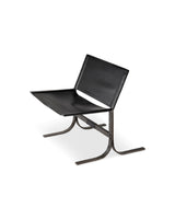 An exciting take on a contemporary classic, this luxe black-on-black sling chair pairs two elemental materials, full-grain grade A leather and hand-forged iron. Edgy and upscale, but still supremely comfortable, it is an eclectic choice for decors from an urban penthouse to a rural ranch.