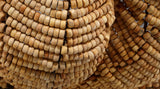 Overflowing with charm, these delightful semi-flush mounts will enliven any room that needs brightening. Try hanging over a dining table or breakfast nook. Each is beautifully crafted of dozens of small mango-wood beads strung on strong metal wire. Every bead is as unique as its natural material, and these variances in shading, size, and finish create mesmerizing one-of-a-kind patterns, ensuring that no two are identical.
