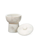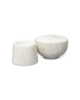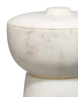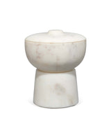 These expertly crafted marble containers celebrate the beauty of the natural stone from which they are carved. Here, Jamie honors the marble with the simplicity of her design, placing a softly rounded, lidded bowl on top of a pillar base to create some seriously chic storage! The white marble shines, highlighting and honoring its intrinsic veining, colors, and patterns, and ensuring that no two will be identical.