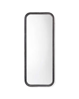 The clean lines of this contemporary wall mirror’s frame are forged of hand-distressed black metal. Featuring gently rounded corners that soften the starkness of the design without distracting and the versatility of hanging horizontally and vertically. Group two or more together for a window-inspired display or use one to add height and dimension to any wall.