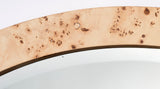 The classic lines of the Chandler wall mirror make it an easy addition to any room of the home. The burnished beauty of its burl wood veneer frame makes it a spectacular one. They are available in charcoal or natural burl finishes, each with a beveled interior mirror and a coordinating MDF back.