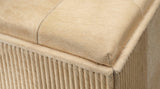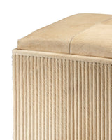 An unexpectedly elegant adaptation of a simple square hide-on-hair ottoman, the Easton's slightly more formal lines showcase the material in a unique and exciting way. The seat is softly cushioned for comfort, the sides are embellished with ribbed details, and the antique brass base adds an extra touch of opulence further elevating the footstool's simple square lines.