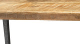 Farmhouse style hand-worked, dark wood table-tops elegantly pair with modern, hammered antique silver legs adding the perfect touch of drama to this table collection.