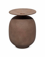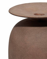 The finish is raw, gently antiqued to mirror the look of a vintage find. The shape is softly rounded, with a narrow neck that flares into an oversized lip. The look is perfection, and easily integrated into nearly any décor style.
