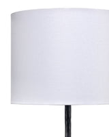 The Humble Desk Lamp is a slender tabletop lamp made from polyresin plaster with a textured charcoal finish. The richly textured base of the lamp lends it a hand-done appeal, and its white linen drum shade and coordinating finial add refinement.