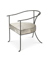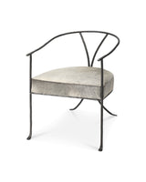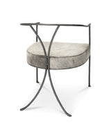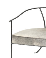 The Kai collection features dynamically swooped hand-forged iron legs, with a delicacy unexpected from such a substantial material. The seating is topped with thick cushions of grey hair-on-hide and the tables with strong tempered glass. Unexpectedly combining grace and strength, they make a striking addition an industrial, rustic, or eclectic home.