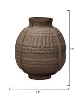 Warm afternoons spent admiring the Greek and Roman antiquities of European museum collections provided the inspiration for this vase. Our version has been masterfully crafted of rich, earth-toned porcelain clay by modern artisans. It can hold water and can be used alone or to display anything from roses to reeds.