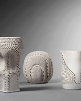 The heavens and the earth (as represented by fine porcelain) finally meet in this series of celestially inspired vases. With their sublimely perforated patterns, organic shapes, and matte finishes they beautifully capture the eternal allure of our stars and moon. The vases are for decorative use only and do not hold water. Each is created by hand and will vary slightly, ensuring each is an individual work of art.
