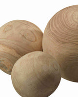 The Malibu Wooden Spheres are a set of three carved wooden spheres perfect for any centerpiece. Their matte stain with a raw unfinished texture simultaneously adds geometric interest and shape to any room. Their surfaces have a hand done look with an irregular look to each piece.