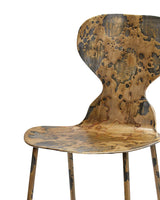 A unique chemical reaction is applied to this molded metal chair making a one-of-a-kind piece perfect for making a statement around any dining table.