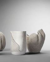 The heavens and the earth (as represented by fine porcelain) finally meet in this series of celestially inspired vases. With their sublimely perforated patterns, organic shapes, and matte finishes they beautifully capture the eternal allure of our stars and moon. The vases are for decorative use only and do not hold water. Each is created by hand and will vary slightly, ensuring each is an individual work of art.
