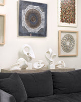 This organic shaped object is placed on a museum worthy stand to elevate it's curves and unique silhouette. It's white resin form adds visual interest to any exposed etagere shelf or behind glass in a curio cabinet with your favorite collected objects.