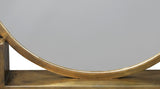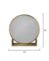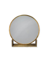 This modern twist on an elegant vanity mirror embraces simple lines in an antique brass or antique iron finish and is delicately accented with a thin strip of white marble to ground this sophisticated design.