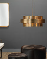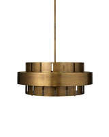 The inspiration for the Orbit pendants by Jamie Young is as unique as the lamps. She pulled from elements as disparate as the medieval turrets of European castles to the sleek circular designs popular in mid-century modern to create them! An intriguing blend of masculine and feminine, they are finished in a burnished antique brass. Available in a chandelier and flush mount style. The bulbs are not visible when sitting under the fixture.