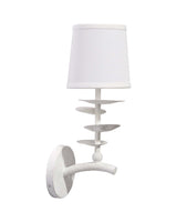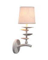 The softness of this wall sconce’s organic inspiration contrasts artfully with the unique material our artisans use to handcraft it. The plate, body, and softly curved petals are formed of white cement! It is then given a richly textured finish full of swirls, decorative dripwork, and free-form brushstrokes. A tapered white linen shade keeps it clean and bright.