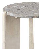 The legs are formed of mango wood in a soft finish that perfectly coordinates with the natural stone tops. With a decidedly organic feel, these accent pieces celebrate the textures and intricacies of their upscale and sustainable materials and the skills of the artisans who craft them.