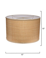 A new lampshade is a quick, easy, and affordable way to update your decor. Try adding a touch of texture to any interiors with this expertly crafted drum shade! Each is made of natural raffia, trimmed by hand in linen, and includes a brass harp and spider.
