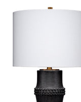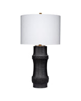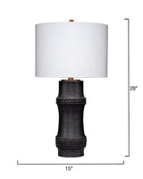 A clean, contemporary take on a classic, the body of this lamp is a minimalistic interpretation of bamboo cane. Ours is unadorned but for a few carefully placed beaded embellishments. The lamps are each handcrafted of resin, with small splashes of brass courtesy of the metal hardware and finial. A white linen drum shade is included.