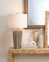 The juxtaposition of the industrial concrete finish on a sophisticated form elevates this table lamp to a refined combination, perfect for any space.