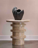 With architecturally inspired lines and industrial notes, the Revolve side table defies categorization. Hand-carved of mango wood by artisans this table features organic variations in finish and texture. Place this table next to a sofa, combine two or three in a seating area for versatile use or even use them as nightstands. Anywhere in your home, this side table is sure to be a favorite!