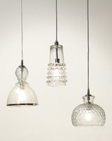 Our Ribbon Pendant Collection is hand-blown with beautiful ribbons of thick glass. These come in two shapes and are available in three colors: all perfect for dinning rooms, bars and kitchens and powder rooms.