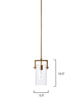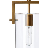 This linear pendant's sleek glass cylinder is suspended by an antique brass rod and structure. Evoking both modern and industrial notes, the glass cylinder allows the bulb to freely shine, beautifully illuminating a room. Consider using two to flank a mirror or hang a cluster above your kitchen island or dining room table for a chic, stylish look. The fixture is suspended from a coordinating 5' max adjustable antique brass rod, and professional installation is recommended.