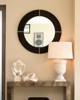 This beautiful mirror is created from naturally selected grey hair on hide, whip stitched together with white leather as a great accent.