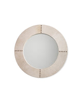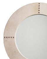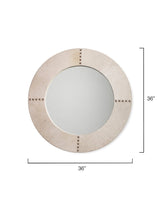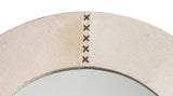 This beautiful mirror is created from naturally selected grey hair on hide, whip stitched together with white leather as a great accent.