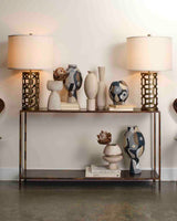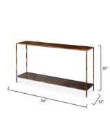 For those who like a little edge in their décor choices, the Royal console was inspired by city streets at dusk and features minimalistic lines in acid washed iron. Featuring a low, floating shelf to display your décor while enhancing its airy attitude. Each table is created by hand and features a patina metal finish revealing one-of-a-kind variations in tone and pattern, proving the perfect accent piece to an entryway or living space.