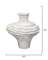 The lines of this evocative vase are open to interpretation. Do you see mounds of freshly whipped cream, a ruffly lace petticoat, or dramatic layers of clouds in an otherwise blue sky? No matter how it speaks to you, each of these watertight vessels is expertly artisan crafted of matte white ceramic. Whether you choose to customize it with your favorite filler or simply display it, it is certain to delight your family and friends.