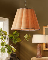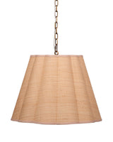 Install these casually elegant and gently scalloped pendants strategically to provide soft light precisely where you need it. Each features an expertly crafted natural raffia or white boucle shade and bottom diffuser to soften and direct the illumination with an adjustable antiqued brass chain.