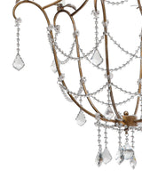 Crystals need to be installed. Each crystal is tied one by one. The inherent variations in tone and texture of artisan made products are preserved. These unique imperfections give our products character and individuality, with each piece having its own personality. Can hang on sloped ceilings.