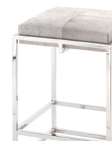 An architectural metal framework makes a clean, yet modern statement. The Shelby Bar Stool is an Art Deco inspired seat with geometric bars and a white hide cushion. The antiqued brass has a polished finish to give it a subtle luster.