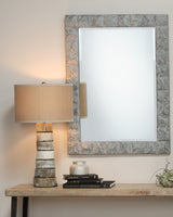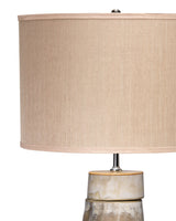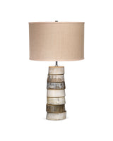 Horn furniture and horn lamps add a new dimension to a room. This sophisticated design features stacked horn pieces beneath a chic hemp drum shade. Perfect for a modern or rustic style den or library.