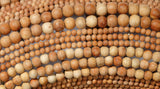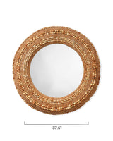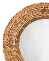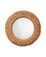 Hundreds of hand carved wood beads are arranged one at a time, by size and shape, to form the glorious frame that surrounds this round wall mirror. The wood is either naturally finished, allowing the intrinsic grains and striations of each piece of wood to become a part of the design, or given a clean white finish, keeping the look breezy and casual. As no two beads will be the same, no two mirrors will be identical.