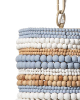 This easygoing, lighthearted look is created from dozens of hand-carved mango wood beads. To celebrate the beauty of the hardwood, our artisans give a selection of the beads a natural finish. Others are hand-painted in blue or white. Each is placed by hand. These pendants evoke ocean breezes and tropical destinations and are a wonderful way to create an at home oasis for your friends and family.