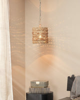 This easygoing, lighthearted look is created from dozens of hand-carved mango wood beads. To celebrate the beauty of the hardwood, our artisans give a selection of the beads a natural finish. Others are hand-painted in blue or white. Each is placed by hand. These pendants evoke ocean breezes and tropical destinations and are a wonderful way to create an at home oasis for your friends and family.