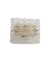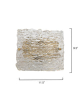 Delicate layers of highly textured glass is subtly curved around an antique brass backplate. As light streams through layered glass, the rivers of texture are highlighted, giving any space a serene ambiance.