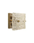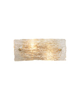 Delicate layers of highly textured glass is subtly curved around an antique brass backplate. As light streams through layered glass, the rivers of texture are highlighted, giving any space a serene ambiance.