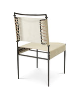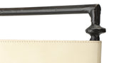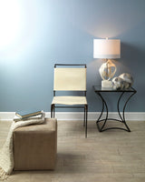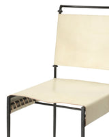 Buttery soft off-white leather is backed with white canvas and cinched around black hand-forged iron legs in this artisan crafted dining chair. It’s a little bit urban, a little bit rustic chic, and with the incredible detail on the back of the chair they look stunning pushed up against a dining table.