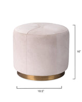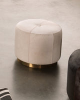 The Thackery collection of hair-on-hide poufs have the unique ability to add both glamour and comfort to any room of the home. Two sizes are available in your choice of white or espresso hides. Each is beautifully handcrafted and accented with a gleaming brass band at the base. Whether you want to pull up an extra seat or put up your feet, with a Thackery pouf you will do it in style!