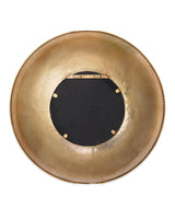 The design of this burnished gold disc evokes imagery as diverse as Trojan shields, Olympic gold medals, and Egyptian sun gods. The frame features a hand-textured, hammered gold finish, while the circular mirror inside is beveled. Hang several together for an eye-catching display, or place just one within a gallery wall for a reflective counterpoint to your cherished collections.
