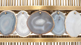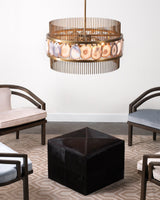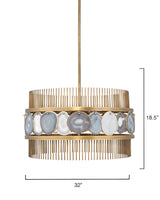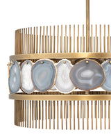 Our Upsala Chandelier is a statement worthy fixture with unique slices of natural agate trimmed in warm antique brass. The jaw-draping circumference is accented with brass posts to extend the design in an architectural, airy way. This piece truly exhibits all around glamour!
