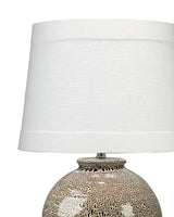 The bold glaze takes center stage in the Vagabond Table Lamp! Neutral creams and browns wrap around this large scale ceramic table lamp and matching finial to maximize size and style. The lamp base's cream tones are matched with an sea salt linen lamp shade to create the perfect pairing.