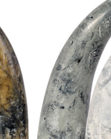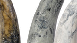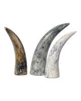 A dramatic reinterpretation of natural horn décor, our trio of sculptural accents is formed of swirled resin in cream, black, and gray. Each piece our artisans craft is one of a kind, as no two sets of patterns created using this technique are ever identical. Display on a bookshelf, console, or coffee table for the vertical accent that your décor is missing.